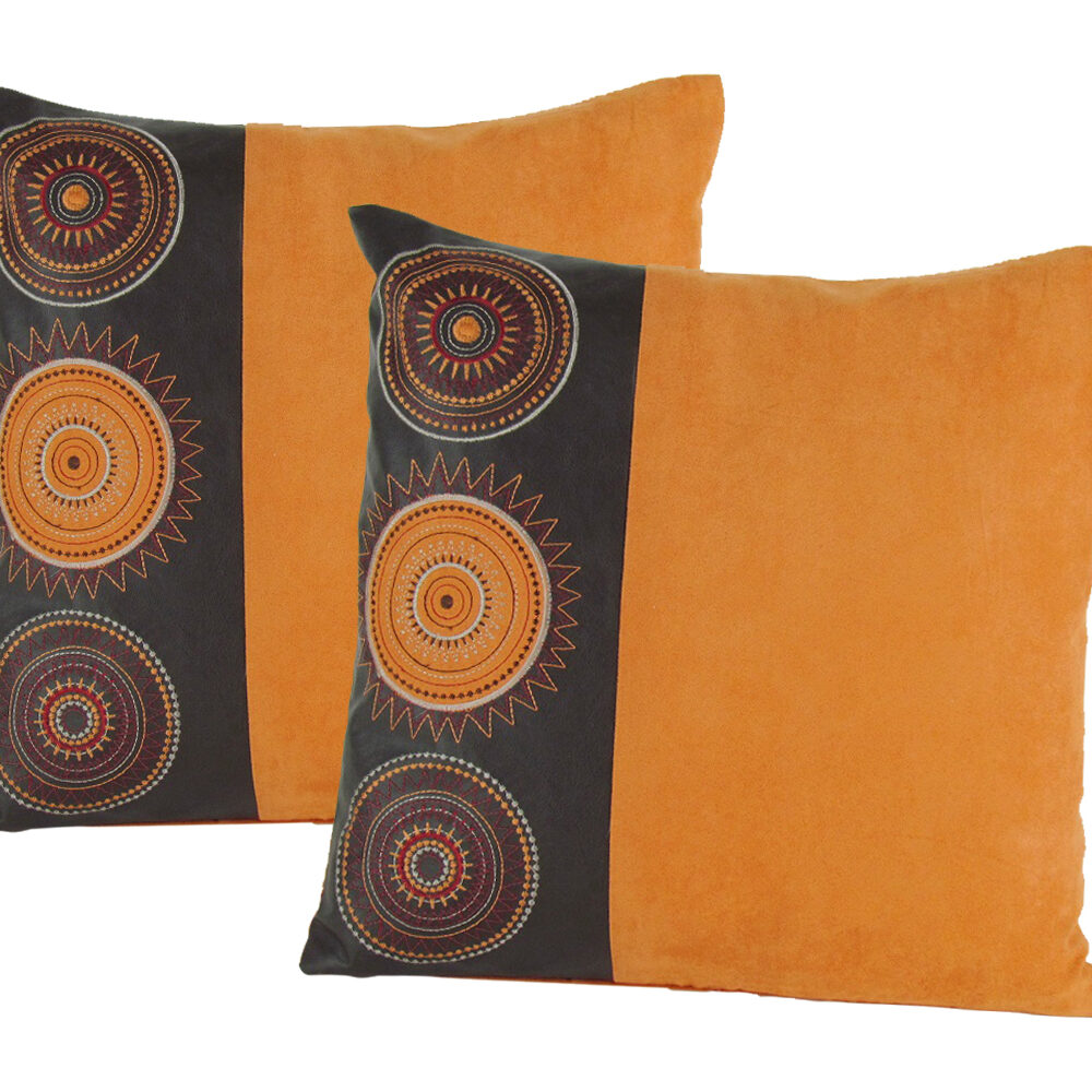Medallions Decorative Pillow, Orange, 17″x17″, Set of 2