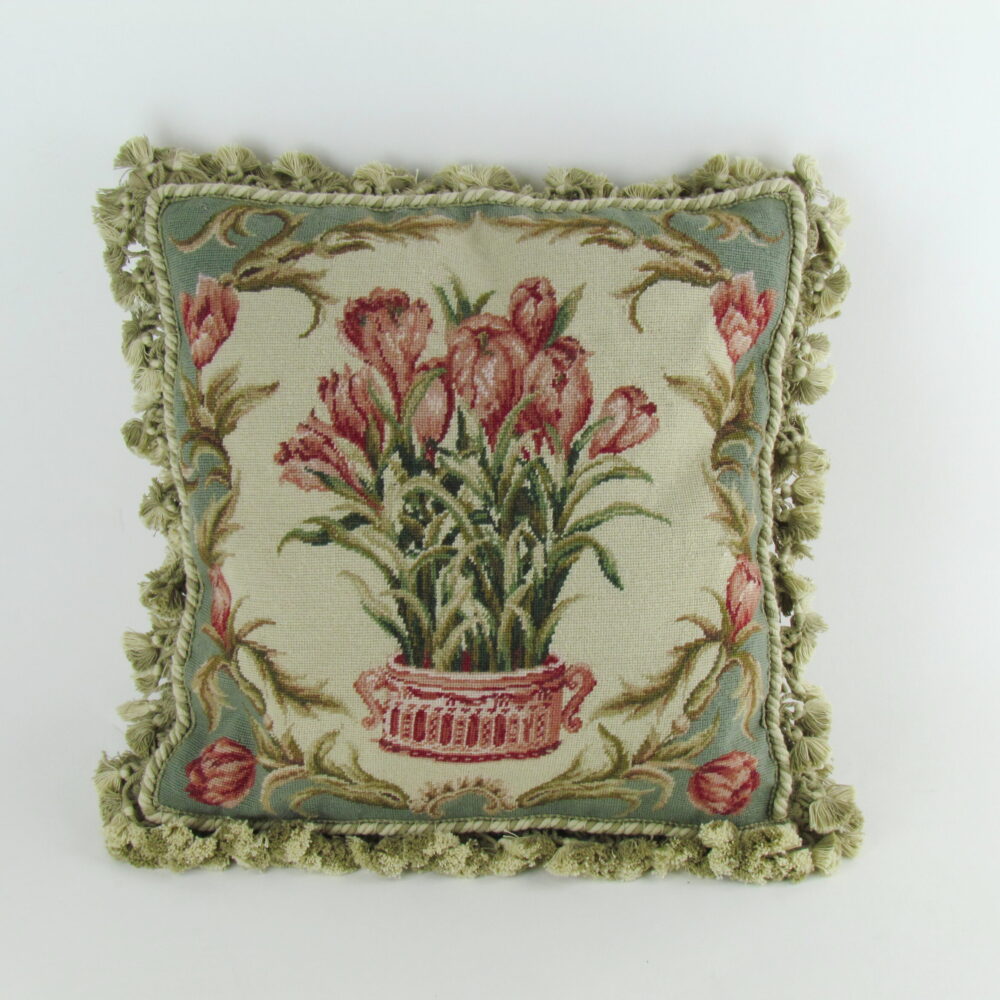 NEEDLEPOINT CUSHION PILLOW 16″X16″