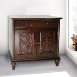 This cabinet can be a very useful storage space to help corral cutter where in the dining room, living room or home office. It has a clean lined silhouette with plenty of space behind the doors and a large drawer this cabinet will keep your space clean looking. Behind the doors there is one stationary shelf that will keep thing books, blankets, movies or more while keeping clutter under control. Delicate brass knob handles with an elegant detail carving to help tie this cabinet together.