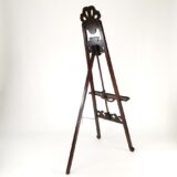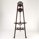 Chinese Oakwood; Color: Mahogany; Assembly Not Required; Smooth Finish; Wooden easel with adjustable shelves; Shelf measures 22Wx3″D; Hand carved top dcor measures 10Wx10″H; Middle dcor measures 11.5Wx7.5″H