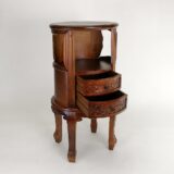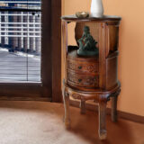 Bring the beauty of a Country Garden style oval end table into you home to enjoy all the possible ways it can be used. The open space on top of this table is a great space to place cell phones, game controllers or a book that you are currently reading. This whimsical side table with its two drawers can hold remotes, keys and magazines while the strong wooden top is a wonderful perch to display books, picture frames or vase of flowers. This accent table is a great way help complete the look in a traditional, rustic or farmhouse decor. Simple assembly requiring only screwing on legs will make this an easy addition to your home.
