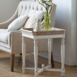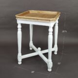 The Southern Living Collection offers the square Alcott Side Table featuring an aged white base and natural wood top. With a raised frame surrounding its tray-style top, the Alcott Table offers a protected space to display treasures or place food and drinks. The casual design and distressed finish give this table a charming versatility to fit a variety of spaces.