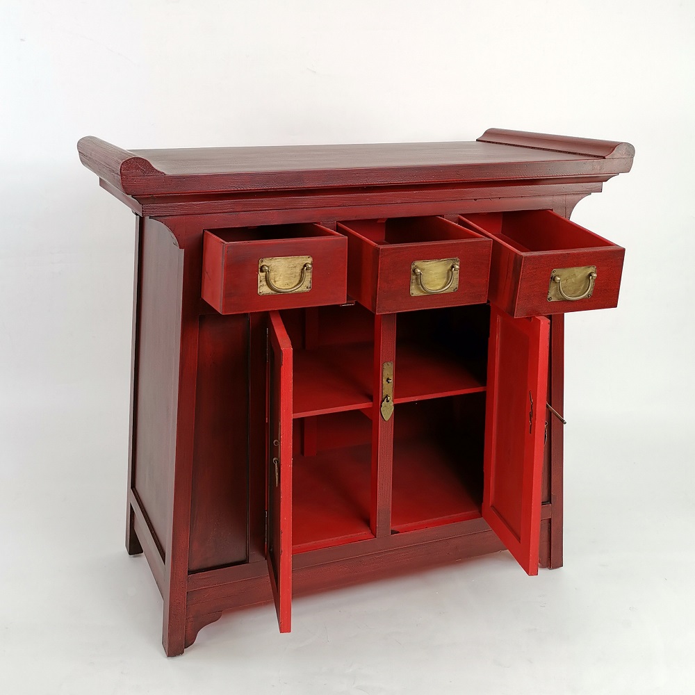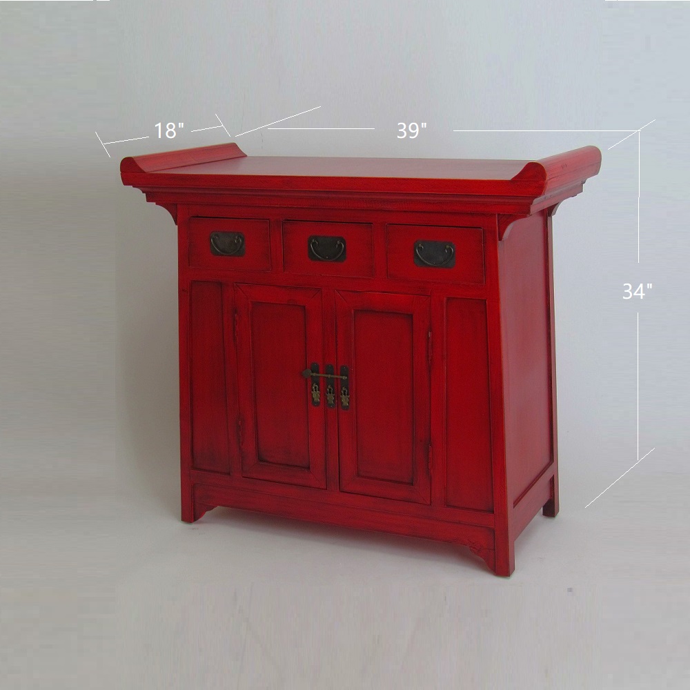 Basswood; Color: China Red; Assembly Not Required; Rough Antique Finish/Worn