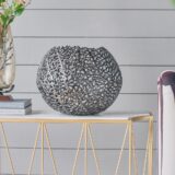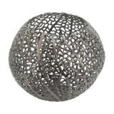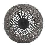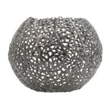 This cool aluminum coral barrel vase is a stylish smoke black finish accent with an open profile design that gives it a cool, modern vibe. Made using aluminum with a cutaway motif, it uses a gentle round ball shape to create a natural coral-like look. It’s a showcase piece for displaying on shelves, kitchen tables, dining areas, and more.