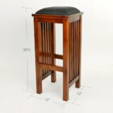 Item Dimension: 13″X13″X30″; Oakwood; Color: Oak; Assembly Not Required; Smooth Finish; Wooden bar stool; Fax leather seat; Assembly Not Required back; Mission style; Solid wood