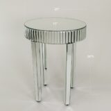 Sheer elegance is what this table will bring to your home. The simple yet sophisticated look this table brings that can be used to highlight a collectible item in an entry room, living room or showcase just the table itself. The mirror is wrapped around the whole table including legs and the design that is displayed around the edge of the table. This is a must have in any decor from modern to vintage for years to come.