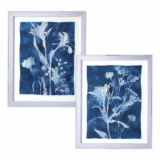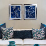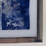 If you looking to add a bit of flare to your walls this unique style of wall art is exactly what you’re looking for. This exceptional wall painting is done over a silver sheet that is used as the canvas with shades of blues to enhance the botanical flora image. Highlighted in an aluminum frame, this painting is ready to hang right out of the box with D-rings that are already attached to the back of the frame.