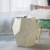 With intriguing geometry and coloring, this hexagonal capes stool is a piece of art that lets you take a load off. The multi-colored, multi-faceted frame of this piece presents endless charm, with the capes creating vivid visuals on each angled section of the body. The stool fits easily within an existing layout, adding a useful seat and brilliant piece of decor.?