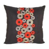 This is a beautifully embroidered throw pillow with bright colored circles in an array of gold, silver and red thread throughout the front of the pillow. Made in a solid chocolate brown cover this throw pillow can blend with any home decor. Bring an essential decorative staple for the living room couch, armchair, lounge, sofa, outdoor garden patio or bedroom.