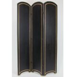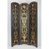 Coromandel; Black/Gold Color; Crackle Finish; No Assembly Required; Hand carved and assembled; Three panels; Double hinged; Worn look throughout room divider; Item Dimension: 48″X1″X72″