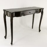 This elegant console table has functionality as well as style and with its detailed carving along all sides. This sturdy piece will be a great addition to living room, dining room, hallway and more. The timeless design will blend harmoniously to complete your look. The one drawer is a perfect place to drop your keys, papers or to keep things out of sight, while the top is the perfect perch for family photos, floral displays or delightful home decor to tie your look together.