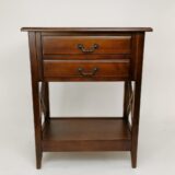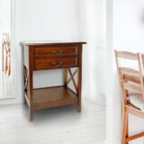 This classic two drawer accent table can be used to store clutter and help maintain a clean room while its open shelf is used to display books, magazines or decor. This table is finished in an oak wood color with clean and smooth lines that will allow it to fit seamlessly into any room. The eye-catching design will bring a modern and stylish feel to your living room, den or family room.
