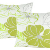 Embroidered flowers pop off of this Embroidered Poly Linen Pillow. This colorful pillow, available in several colors, features a polyester and linen blend that is as comfortable as it is durable.