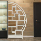 Item Dimension: 4″X12″X78″; Birchwood; Assembly Not Required; Smooth Finish; Asian Inspired display unit is perfect for dinning room, living rooms or den.;This half circle can be viewed both from front and back so putting two together will really bring something extra to any decor.;Can be used to display pictures, unique valueables or collectables items.