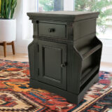 This accent table is a wonderful multi-tasking table that may be placed anywhere in your living room, home office or in a waiting room. This sturdy wooden table with the open sides to hold magazines or thin books also has a spacious drawer and extra storage space behind the door to keep everything within arms reach.