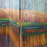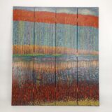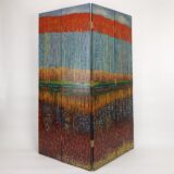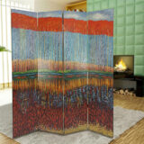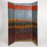 Hand Painted; Multi Color; Brush Strokes & Light Crackle Finish; No Assembly Required; Four panels; Hand painted; Item Dimension: 64″X1″X72″