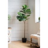 With its impressive height, wide leaves, and rich color, the Fiddle-Leaf Fig Tree adds a verdant yet stylish look to any home or office. The maintenance-free durability of this faux tree makes it a versatile accent for a sunroom, global-inspired living room, office foyer, or even a child’s playroom. Enjoy the soothing beauty of nature in your home or office without the hassle of a real tree.