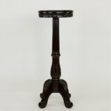 This exquisite French-style wooden pedestal features intricate hand-carved detailing, showcasing the fine craftsmanship and elegance of classic design. The pedestal’s gracefully scalloped legs add a touch of sophistication, while the glass top provides a sleek, modern contrast to the ornate woodwork. Perfect for displaying artwork or cherished items, this piece blends timeless artistry with functionality, making it a standout addition to any room. Its delicate carvings and refined silhouette capture the essence of French antique furniture, bringing both beauty and style to your space.