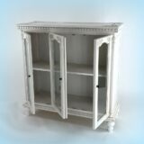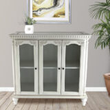 Item Dimension: 39″X14″X39.5″; Birchwood; Color: White; Assembly Not Required; Smooth Finish; Carved design; Behind each door the space is 1.75Wx11.5Dx14″H on top and bottom; Assembly Not Requiredn removable shelf; Assembly Not Required dividers;between each door; Legs are 3Wx3Dx5″H