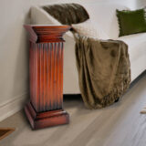 The Greek Column Pedestal crafted from basswood in a beautifully brown finish to match your decor. Choose your favorite height vertically grooved square column looks stately. What we like about this column pedestal is this handsome piece will elegantly display your favorite plant, vase, or statue. The wide base provides additional stability while the brown finish is somewhat worn to look antique. This item is a sophisticated piece for your library or office.