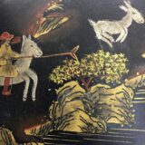 Solid Basswood; Red/Black Color; Hand painted on both side; No Assembly Required; Brush Strokes & Light Crackle Finish; Two different scenes on each side; Four panels; Double hinged; Item Dimension: 64″X1″X72″