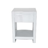 Color: Mirror; Assembly Not Required; Smooth Finish; Item Dimensions: 18″X15″X26″; Drawer is 12Wx12Dx9″H; Drawer stoppers; Open space is 14Wx15Dx12″H; Diamond cut crystal design on chrome handle; Legs 2Wx14Dx3.5″H with adjustable footer height; Mirror on pine wood