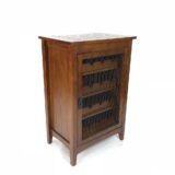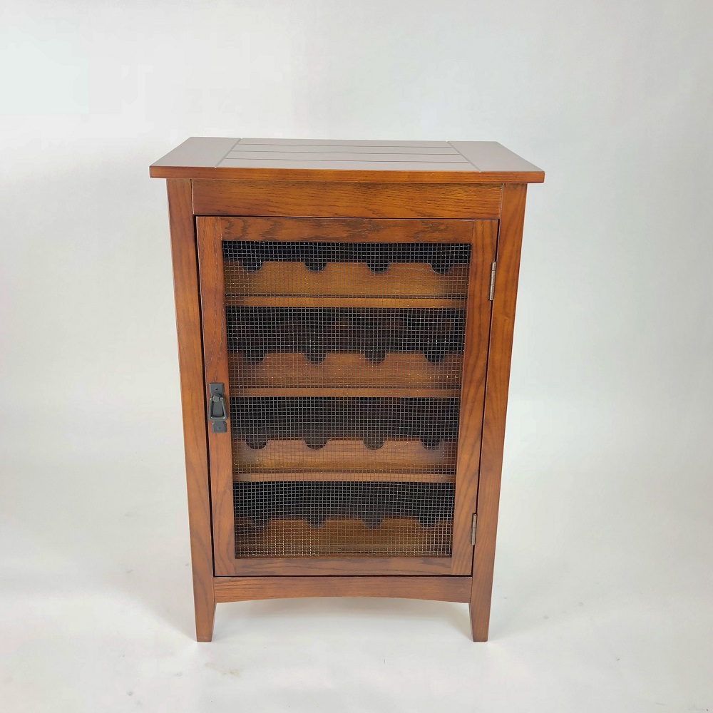 Item Dimension: 24″X16″X36″; Oakwood; Color: Oak; Assembly Not Required; Smooth Finish; Holds 2 Bottles; Each shelf is 19.5Wx12Dx6.5″H; Black metal hardware