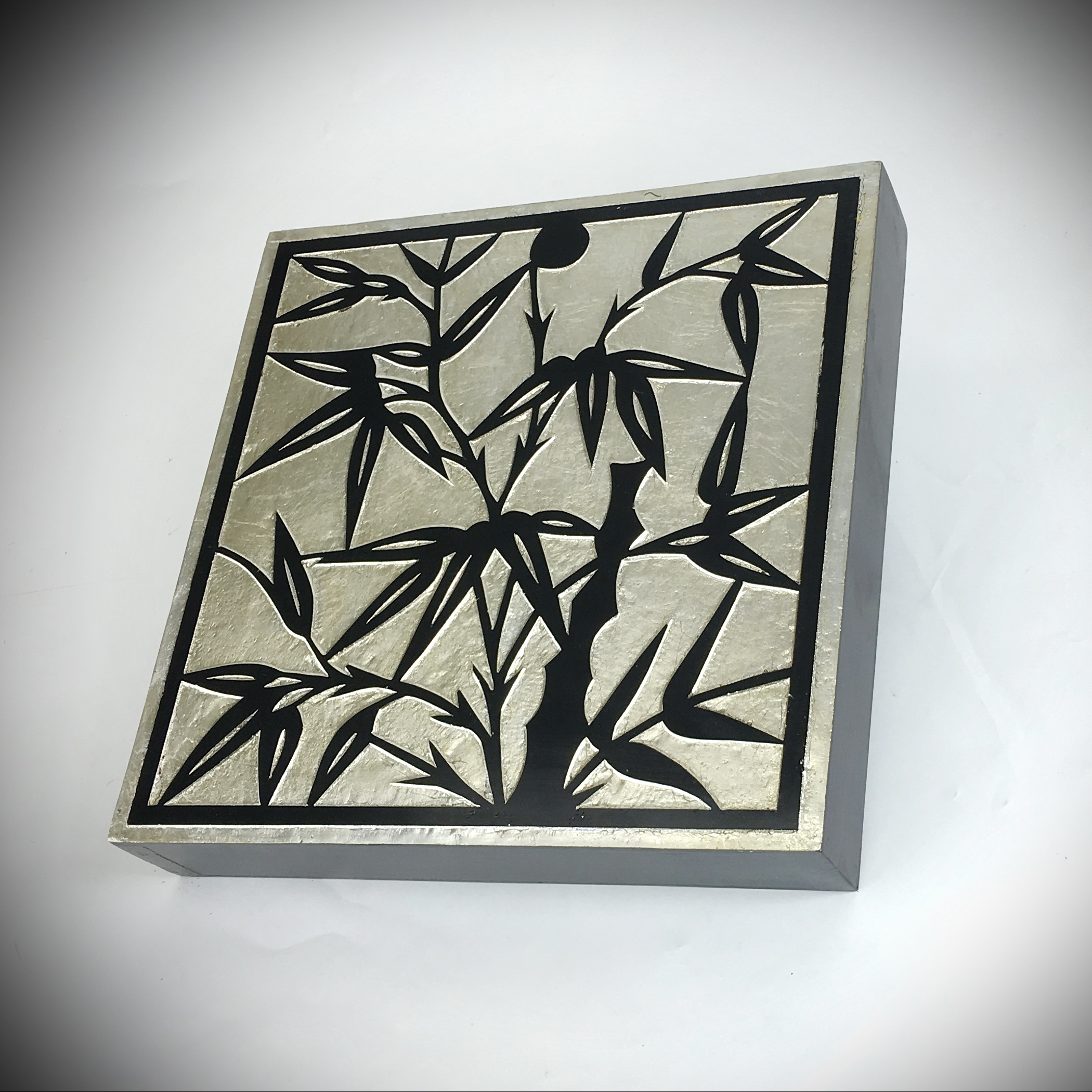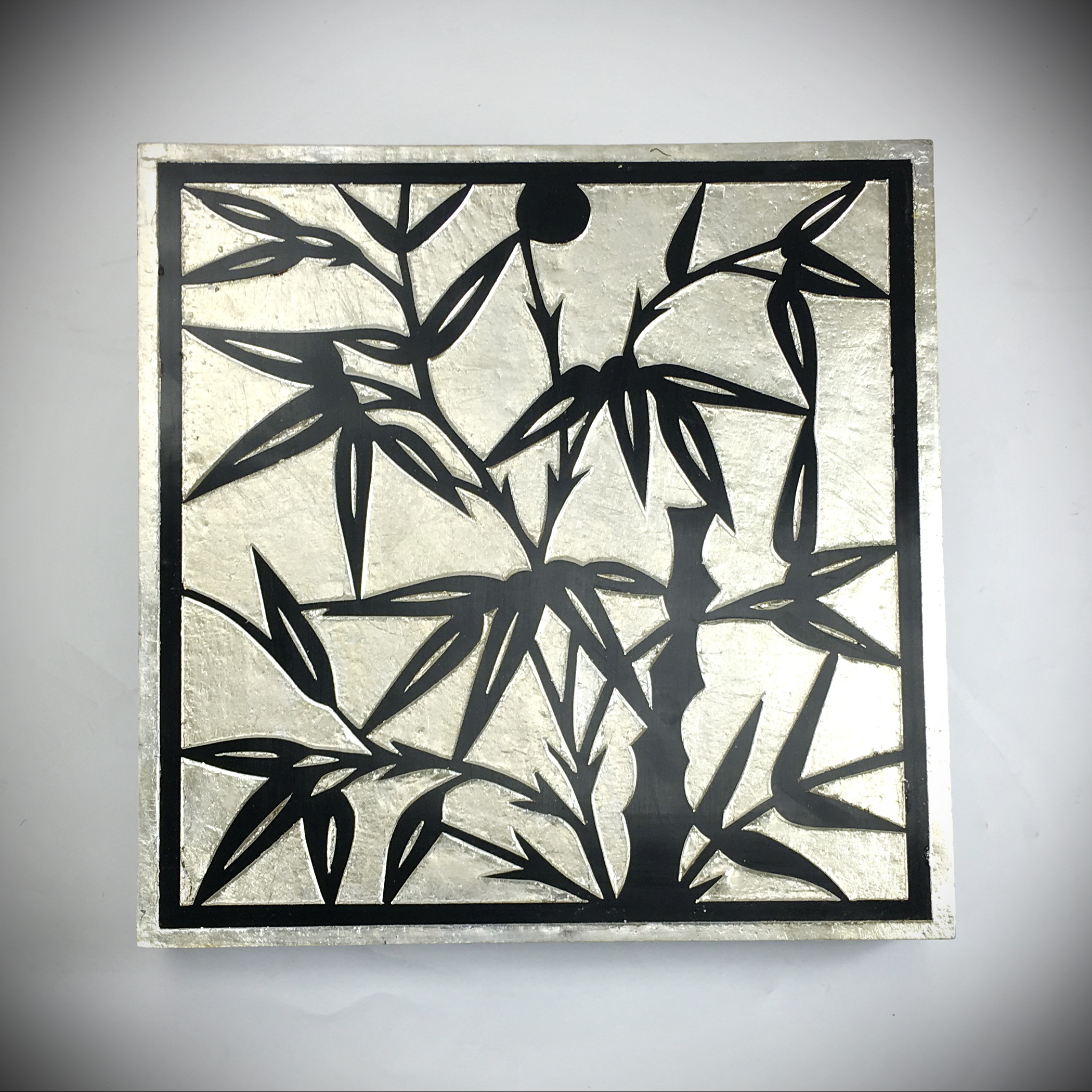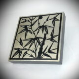 Coromandel style. Chinese Bamboo design. Cedar plywood frame. Crackle finish. Coromandel screen start with a cedar plywood frame covered in a cheesecloth material. Then layer after layer of plaster is applied; each layer must dry before another layer can be applied. After all the plaster has been applied several coats of lacquer is put over the entire surface. The design is drawn onto life-sized paper and carefully traced on to the panels. The craftsman then hand carves the design into the screen, through the lacquer into the plaster. Once the screen is done it is painted with water based paint or silver/gold leaf is applied and sealed with a clear lacquer coat.