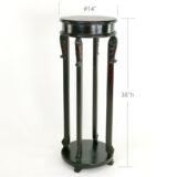 Bring this beautiful wooden double-layered pedestal into your home! It’s the perfect way to showcase plants or display artistic accents. Crafted from solid wood, the pedestal features an antique black finish with a hint of red peeking through. Its curvy legs and scalloped sides complete the look, making it a delightful accent for any corner or alongside a seating area.