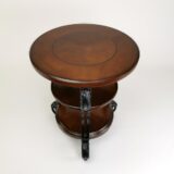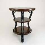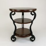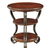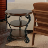 The ornate designs supporting and decorating each accent table will surely update any living space. Scroll detailing found along the metal legs creates a sophisticated appeal, drawing attention to the open shelves below.