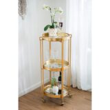 A polished gold finish and metal construction give appealing modern flair to a versatile cart.Whether it’s used as a decor shelf to display potted plants and mementos or as a bar cart,it will remain a versatile piece to have in your home or office.Complete with 3 tiers,locking wheels,and removable tray,it can be placed just about anywhere to instantly update the space.