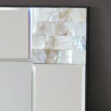 Color: Mirror; Assembly Not Required; Smooth Finish; Item Dimensions: 35″X0.75″X24″; 1/4″ Frameless Beveled mirror; 1/2″ Pinewood base; Mirror 29″ x 17″; Pebble 3.25″x3.25″; side and top glass strip 3″; Mirror on pine wood