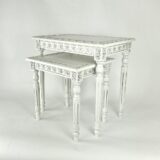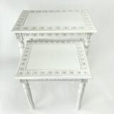 Complete your living room with these set of two nesting tables. Beautifully hand assembled with a delightful floral carving around the top and sides of each table. These tables are sturdy and practical to hold a lamp books or used as a focal point in the room. These tables can also be a wonderful perch to display family photos or a complimentary floral display. You’ll enjoy how this table will blend seamlessly into your current decor with its intricate design.