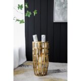 Modern art meets home decor with dramatic results. Dazzling in a rich gold metallic finish the Ronnan vase has offset rectangular openings, all cut by hand. With a generous size this vase is perfect for display on a table or the floor.