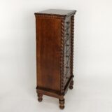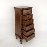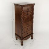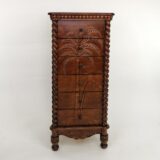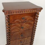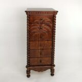 A stunning fusion of natural beauty and functional elegance, this chest boasts six spacious drawers adorned with intricate palm tree carvings, each detail meticulously crafted to bring a touch of tropical charm to any room. The palm tree motif, delicately etched into the rich wood surface, evokes a sense of serenity and exotic allure, transporting you to a tranquil oasis with every glance. This chest offers ample storage space within its six drawers, providing practicality without compromising on style. Each drawer glides effortlessly, promising ease of use and convenience. Whether placed in a coastal-themed living room, a breezy bedroom retreat, or an airy sunlit hallway, this chest of drawers serves as both a functional storage solution and a captivating piece of artistry, infusing your space with warmth, character, and the timeless allure of tropical paradise.
