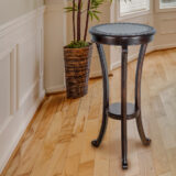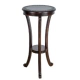 Item Dimension: 17.5″X17.5″X36″; Birchwood; Color: Brown; Assembly Required; Smooth Finish; Carved design; Shelf space 9Wx9Dx2″H; Legs 2Wx1.5Dx12.5″H