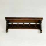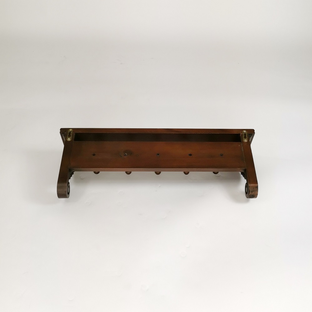 Add dimension and extra storage to your bedroom, bathroom or living room walls with our Philip Wall Hanger. Conveniently hang towels, purses, jewelry or other belongings on the 5 wood pegs while displaying a mix of small decorative items on the shelf’s surface. This hand-crafted shelf in a warm oak color will be a great balance of beauty and stability for your current decor. Arriving with hidden wall mounts making installation a breeze right out of the box. This piece is made from solid wood measuring 22 inches wide, 5 inches deep and 8 inches tall.