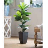 With its wide leaves and rich color, the Potted Fiddle-Leaf Fig Plant adds a verdant yet stylish look to any home or office. The maintenance-free durability of this faux plant makes it a versatile accent for a sunroom, global-inspired living room, office foyer, or even a child’s playroom. Enjoy the soothing beauty of nature in your home or office without the hassle of a real tree.