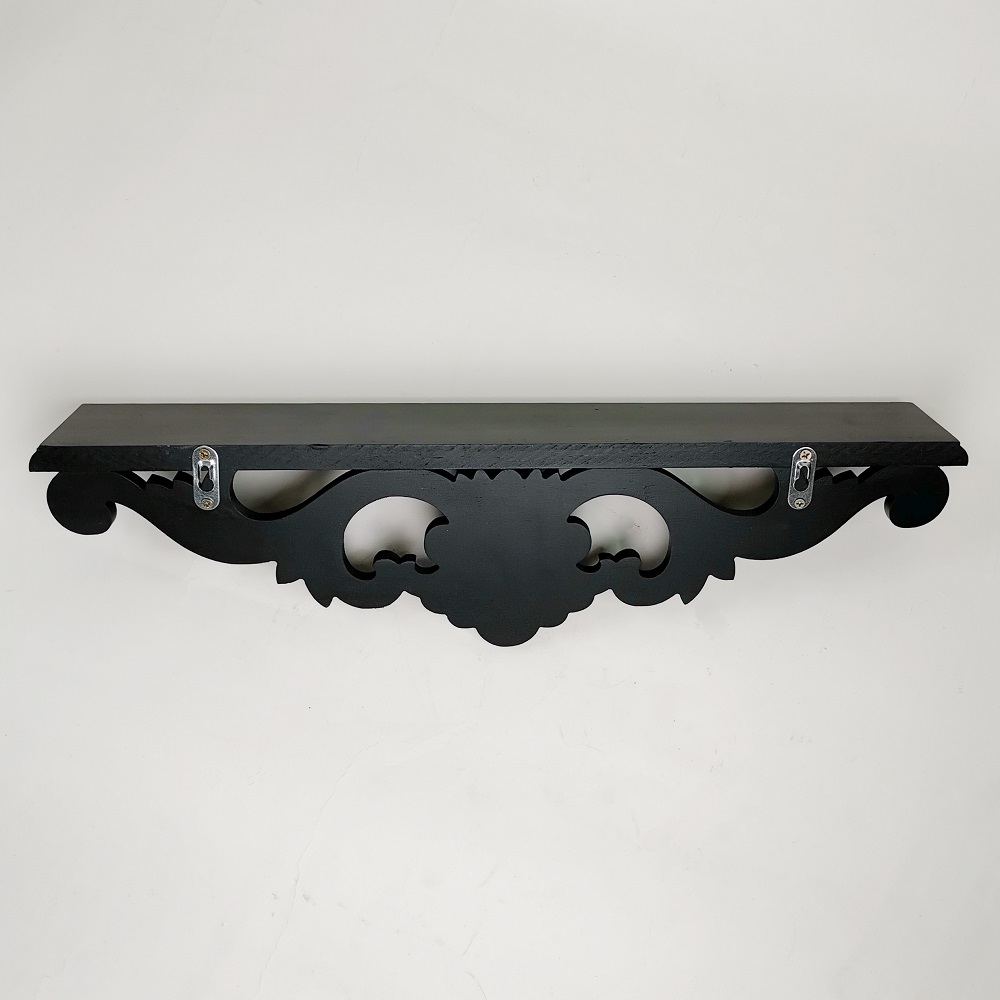 Showcase your family photos, home decorations or lightweight decor on this vintage style floating shelf. The solid wood construction makes this an ideal shelf for any wall space in the living room, bedroom or family room. This hand-crafted shelf in an antique black color will be a great balance of beauty and stability for your current decor. Arriving with hidden wall mounts making installation a breeze right out of the box. This sleek and stylish shelf will be a perfect blend for a modern aesthetic.