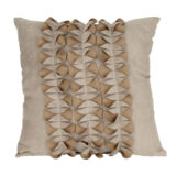 Bring a stylish aesthetic into your home with this decorative throw pillow. While playing with shape the beautifully stitched suede circles are folded and sewn to resemble lace across the top of the pillow. This is a creative way to tie your room together with a neutral color it will look wonderful on a sofa, armchair, lounge or in a bedroom.