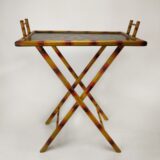 Cedar Plywood; Color: Multi; Assembly Not Required; Smooth Finish; Hand painted and assembled; Bamboo hand painted on legs and frame; Tray surface 26Wx15.75″D; Legs are 37 long