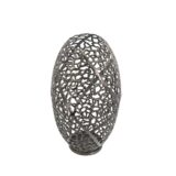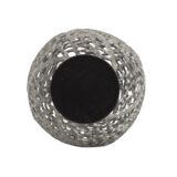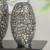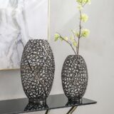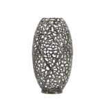 This aluminum coral round barrel vase is a small smoke black accent vase that draws influence from nature to create a cool,modern look.Framed in metal with a cutaway motif,its gentle round shape and barrel design make it a standout addition to bookshelves,tabletops,wall-mounted shelves,and more.It’s a charming way to show some extra personality without overpowering other decor.