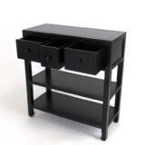 Add this classic console table to the entrance of your home as a welcome station and to unload everything from your day out. Built of sturdy wood this console is very convenient with three drawers and two shelves that can hold anything from mail, books to keys. With a catch all dish or flora display sitting on top of the console will bring a bit of calm and ease knowing your things are nicely stored. In a family room this is a great place to coral game boards, game consoles or keep toys organized and off the floor. This classic console will help to keep personal items corralled and maintain a clean polished look. This console can also be used a server for example a coffee station or desert station with plenty of space on top for a delightful presentation. All the open space and drawers to hold extra plates, napkins or silverware to help entertain everyone. This console will soon become a favor to help hold necessary items at arm’s reach in any room.