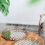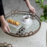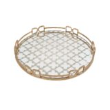 This large-size Valentina tray offers elegant multipurpose design. Use as a starting point for decorative arrangements like candle groupings, table centerpieces, and so much more. This piece is crafted from glass with a metal frame in vintage gold.