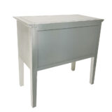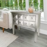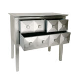 Pine wood; Color: Silver Leaf; Assembly Not Required; Silver Leaf Finish; Three drawer console; Top 2 drawers 12Wx13Dx5H; Bottom 25.5Wx13Dx5H; Authentic silver leaf; Back has light gray paint