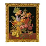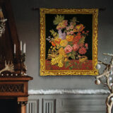 A beautiful antique tapestry reproduction of a bouquet of flowers, perfect for any room of the house.
