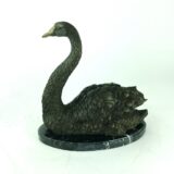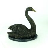 This exceptional bronze sculpture captures the grace and elegance that only a beautiful swan can bring to a room. The feathers have been intricately created to show the swan begin waddling in the water to enjoy a graceful swim across a lake or pond. Known for their love and long-lasting monogamous relationships this swan will bring a delicate balance to your home.