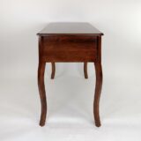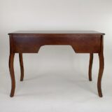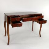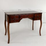 Oakwood; Color: Brown; Assembly Required; Smooth Finish; Four side drawers are 8.5WX13Dx2.5″H; Middle drawer is 16Wx17Dx2.5″H; Curvy legs; Top 1.5″ thick